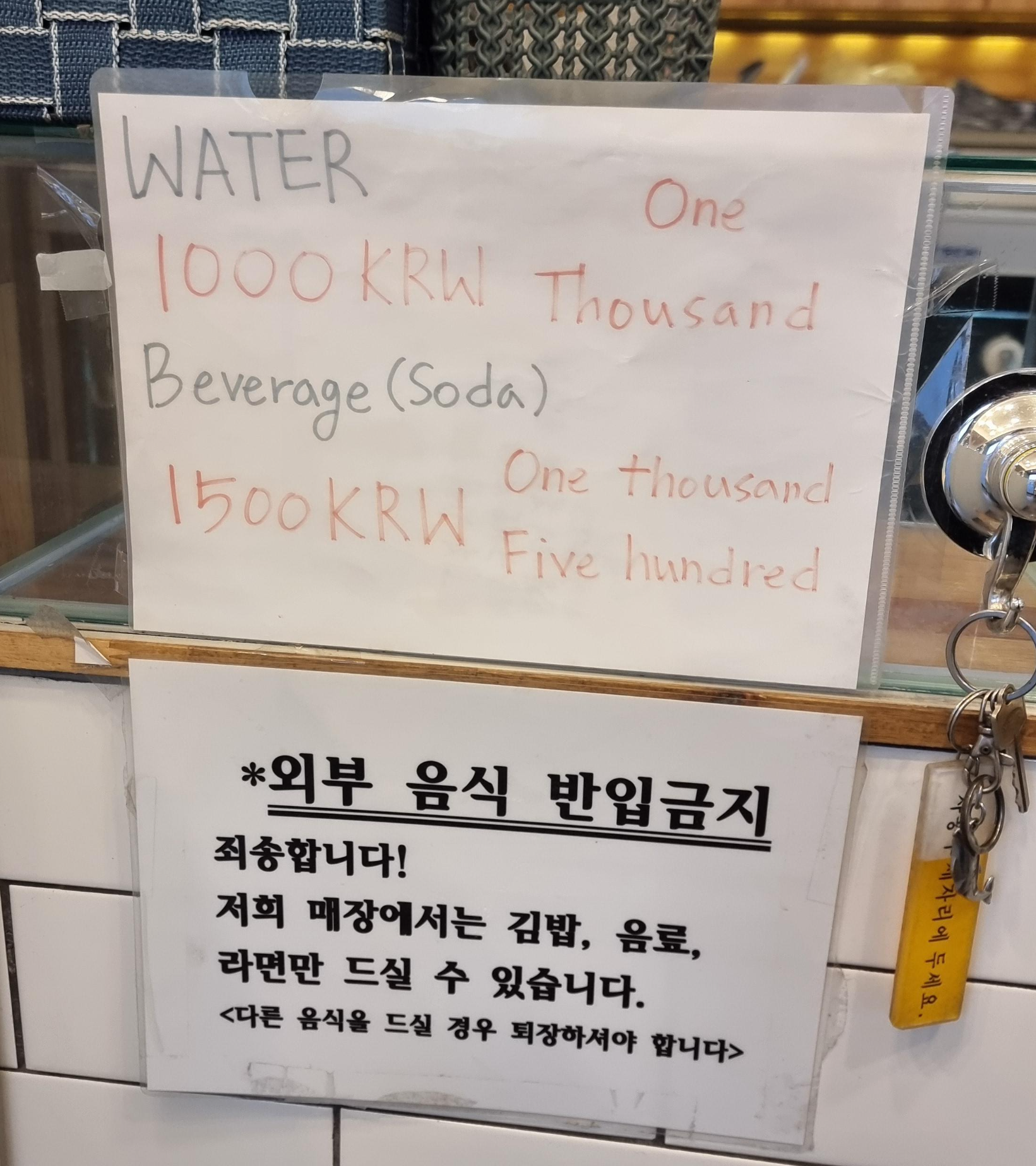 김밥 맛있었고 라면 맛있었습니다. 절대 외부음식 들고 들어오면 안댑니다!