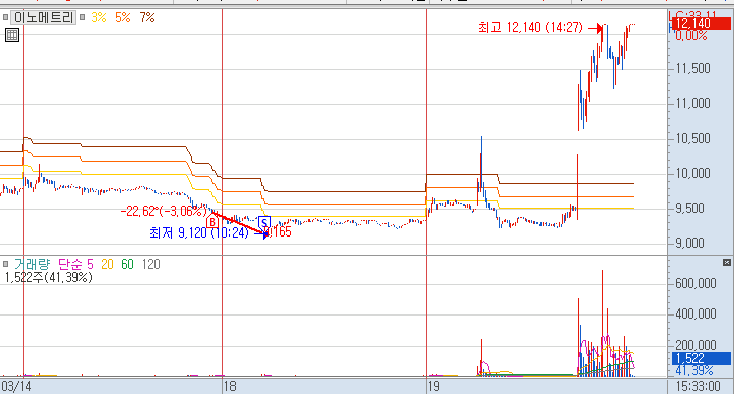 매일 퇴근하고 집에 돌아와 오늘 국장을 한번 복기하는데 유리기판테마로 정리를 해두었던 이노메트리가 상한가에 갔습니다.